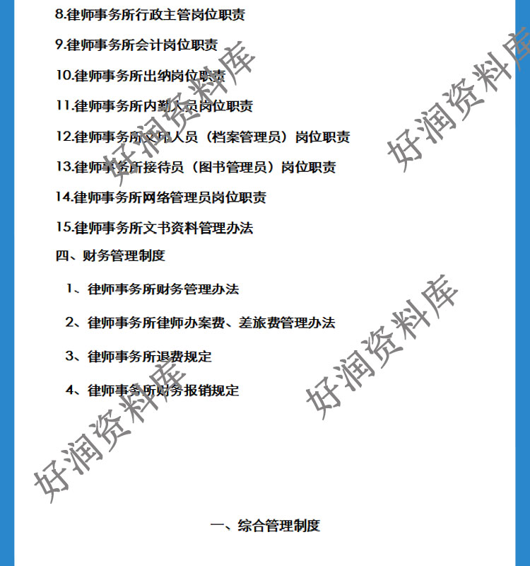 律师事务所开办筹备管理制度岗位职责表格合同计划与总结全套资料