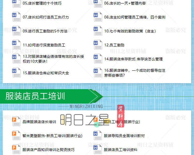 连锁实体男女服装店创业开店管理资料陈列销售话术培训促营销方案