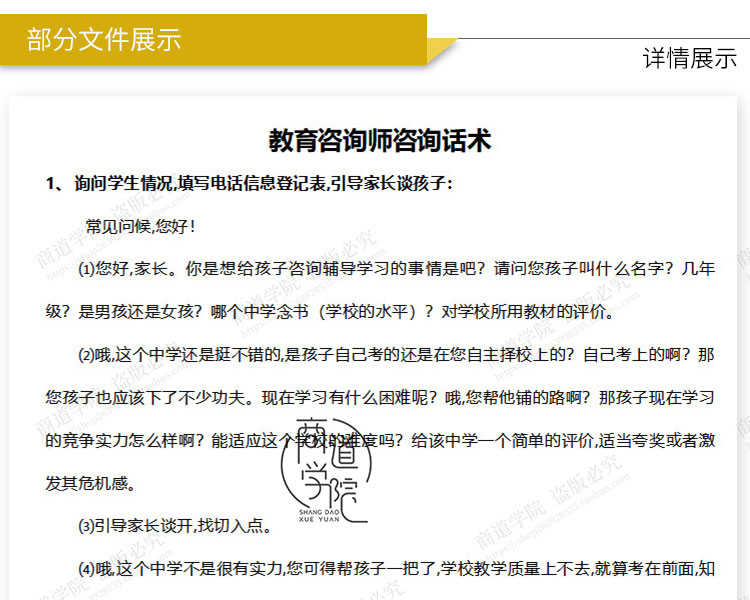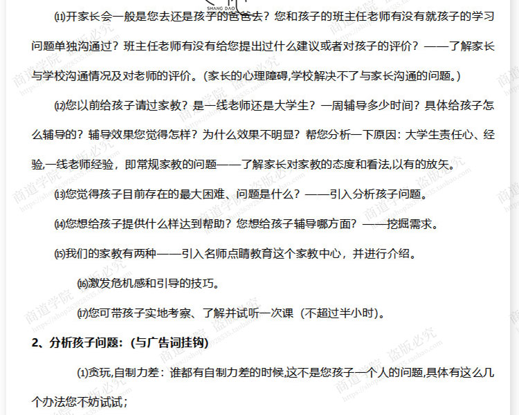 文化课课外辅导班教育培训机构电话邀约招生发单促单咨询师话术