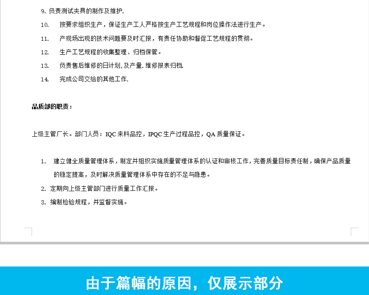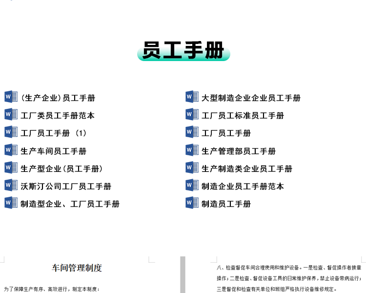 工厂车间制造业人事管理规章制度员工手册岗位培训职责工作流程